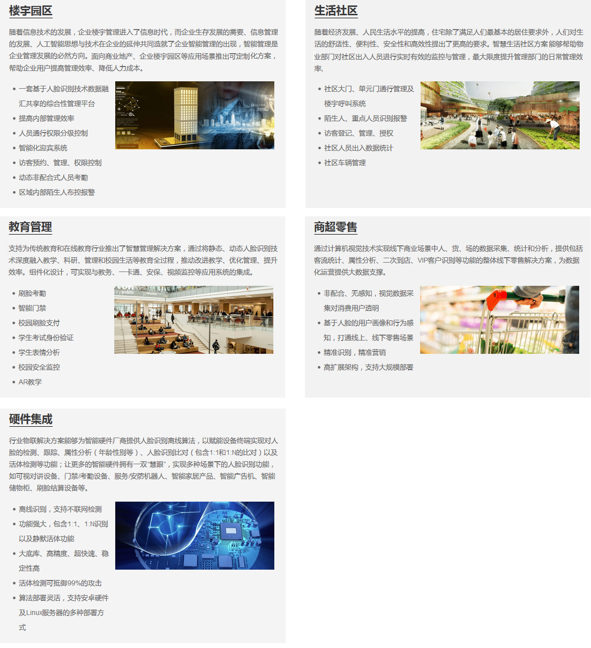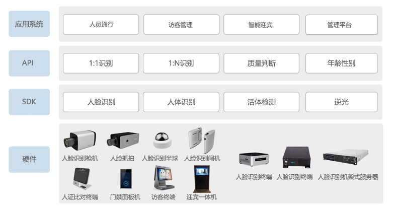 全景房禁係統的核心是开放判断技術,在保留原有房禁安全性的同時大大增強了通行的便捷性。开放判断房禁係統采用動態、非配合方式進行开放驗證,相較傳統的刷卡房禁更為高效;同時由於开放特征的唯一性,還解決通行人員忘帶證件、冒用他人證件等問題。根據使用場景不同,用戶可以選擇房禁、閘機等不同形態設備,實現對出口權限的管理。